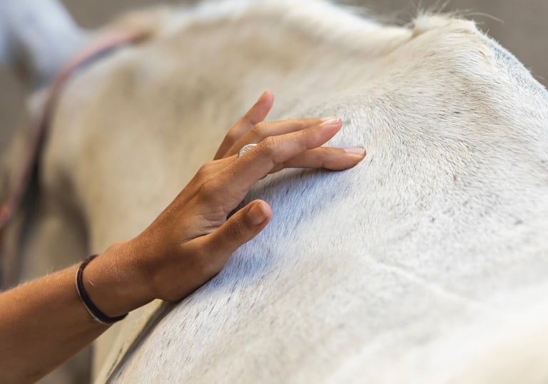 In addition, animals might react with biting, kicking or similar defence mechanisms to any type of physical work on their bodies. Please supervise your animal's or pet's reactions carefully and keep in mind that your safety always comes first. When in doubt or when you feel insecure, please refer to a professional animal therapist for support.